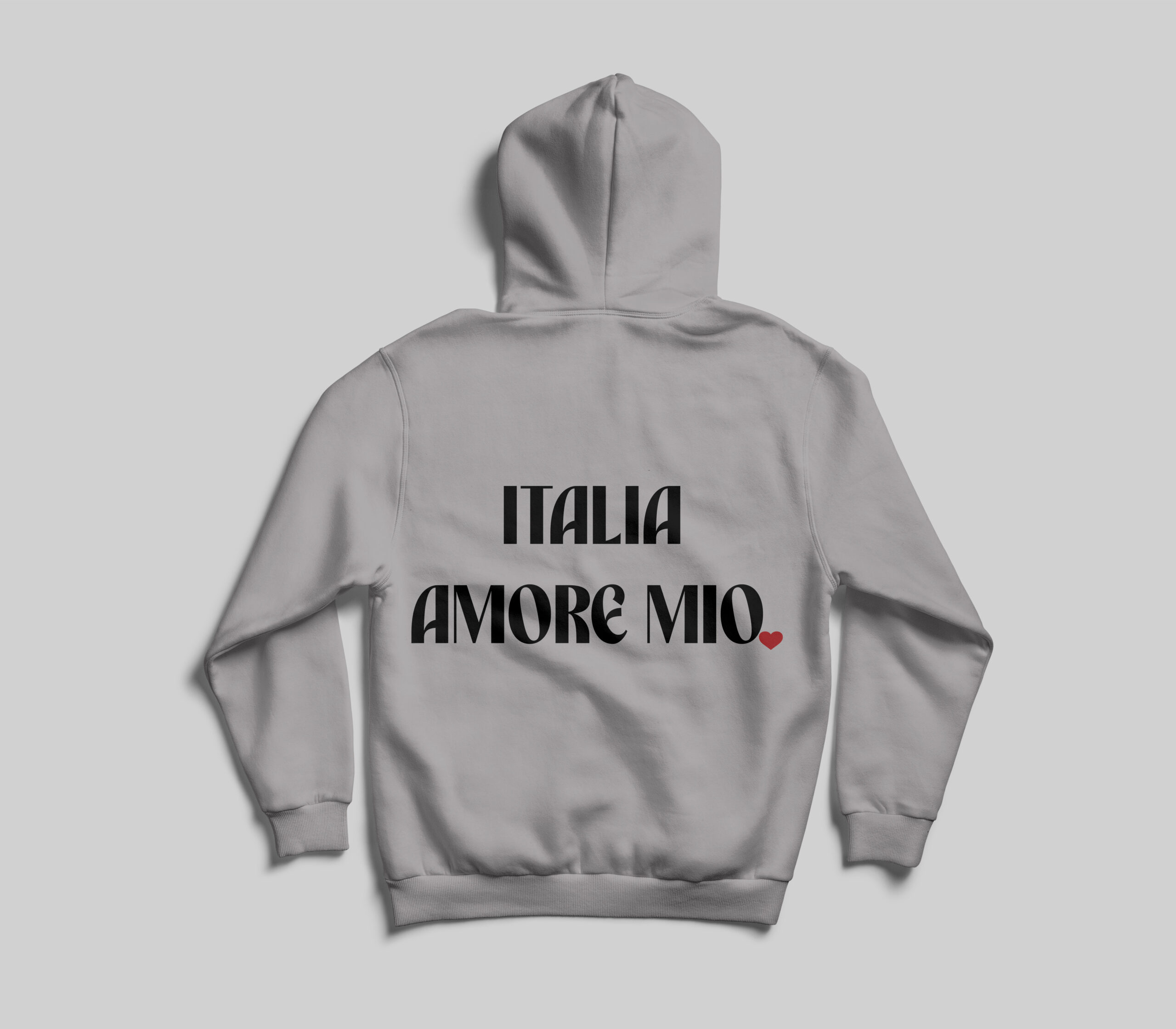 La sudadera presenta un diseño simple pero impactante, con la frase “Italia Amore Mio” y la silueta del país, evocando un homenaje elegante y moderno a Italia. Ideal para quienes quieren mostrar su amor por esta nación de manera sutil y estilizada.
